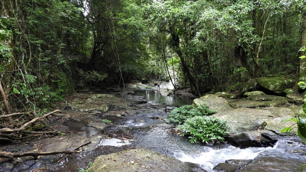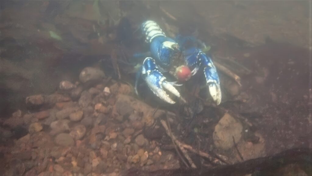 The mountains of Southeast Queensland and Northern New South Wales have significant areas of sub-tropical rainforest. Associated with these mountains are numerous freshwater streams. After rain, these streams can become fast flowing. When these streams make their way through the rainforest, especially where there is good riparian cover to provide shade and leaf litter, you may come across a remarkable vivid blue and white crayfish.